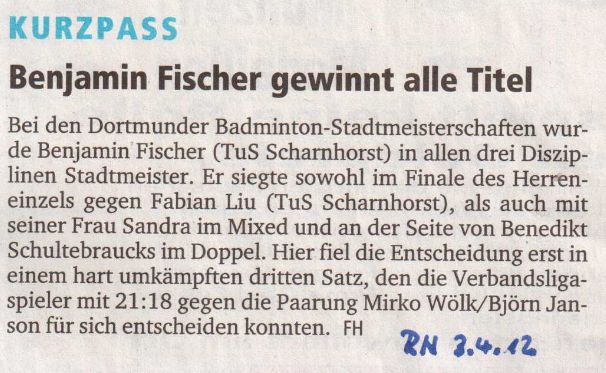 Senioren Stadtmeisterschaft 2012 - Fachschaft Badminton Dortmund